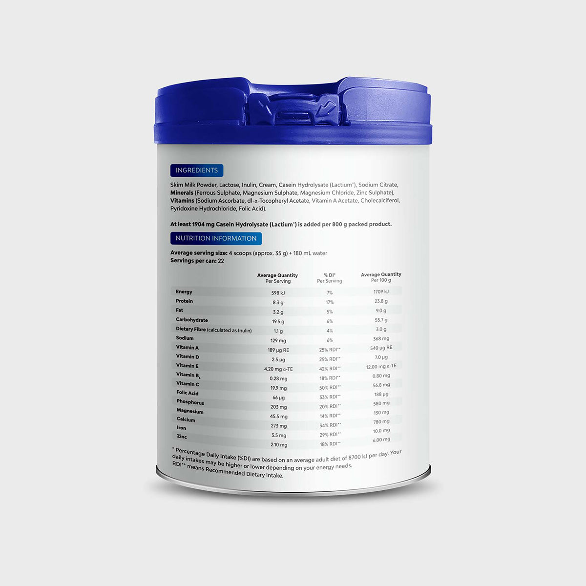 Specially formulated for adults over 40, Aged Care Plus combines high-quality protein, calcium, vitamin D, Lactium®, and prebiotics to support strong bones, healthy digestion, restful sleep, and a stronger immune system. Made with Australian pasture-fed cow’s milk, GMO-free and hormone-free, it helps maintain vitality and overall well-being as you age.